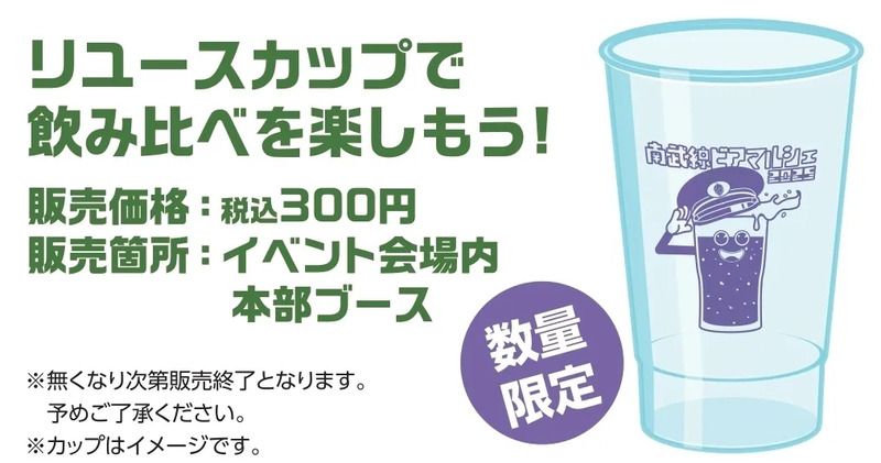 くり返し使えるリユースカップが数量限定で販売されます。