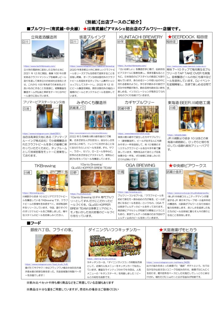 出店 | ・ブルワリー ・フード ▶詳しくはこちら |